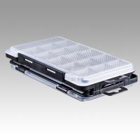 状況に合わせてワームの種類やカラ―を持てるだけ持って行きたい。 尚且つ、機動力を損なわずにランガンしたい。 そんな相反するアングラーの欲求を可能にするのがこのケース。 厚さわずか“18mm”に設計することでかさ張ることなく持ち運びが可能。 さらに、2つのケースを簡易ドッキングでき、蓋にはワームスリップ加工を採用。 ランガンシステムBOX上段にジャストフィットするサイズ設計。 ライトゲームアングラーを手厚くサポートするケースです。