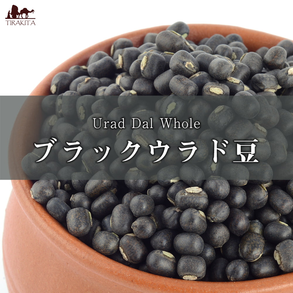 黒い皮付きウラド豆。日本ではケツルアズキと呼ばれています。ほっくりとした食感で、ダルマッカニーなどによく用いられます。