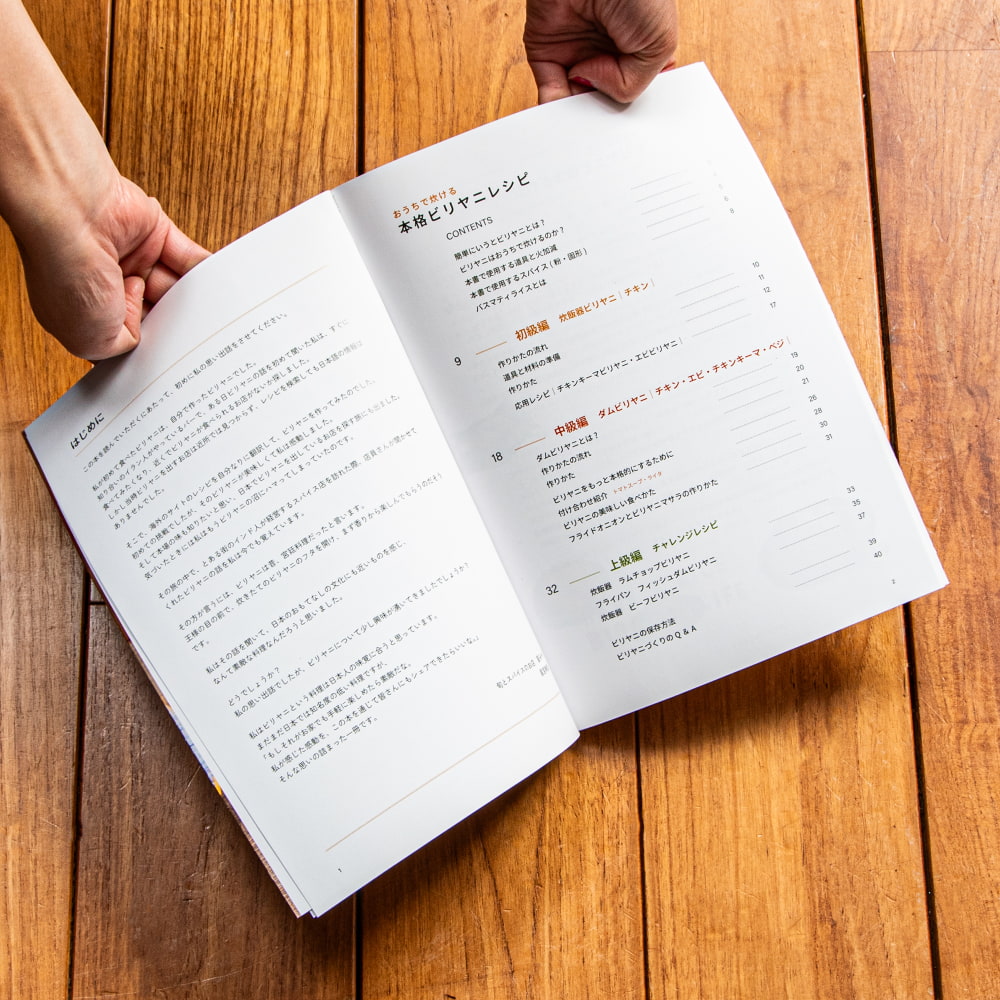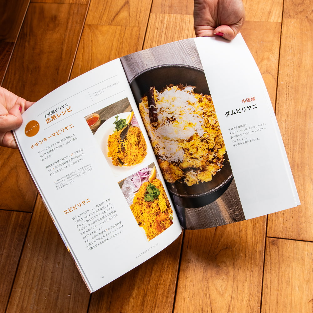 炊飯器ビリヤニから本場式のダムビリヤニ、ちょっと珍しいビーフビリヤニまで、レシピの構成も初級・中級・上級と分かれているため、初めての方から上級者まで幅広くご満足いただける内容です。おうちでビリヤニ作りをするなら必携の一冊!