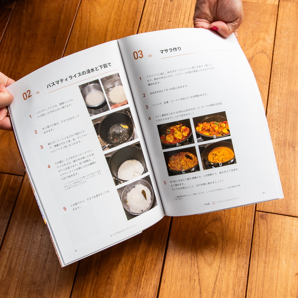 ビリヤニを炊飯器とフライパンでお手軽に、しかも味も香りも本格的に炊き上げる方法までを、コラムを交えながら網羅的に紹介しています。見やすくて分かりやすいフルカラー、調理工程の写真も充実の構成で、初心者の方でも安心です。
