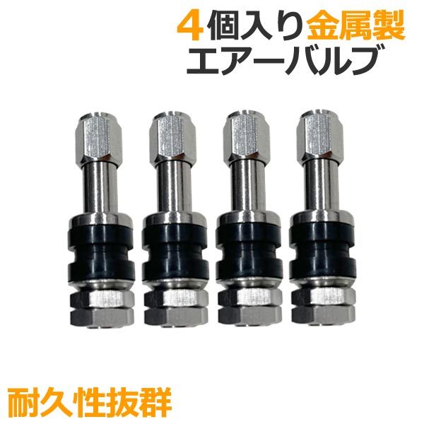 送料無料 交換用 スチール製 エアーバルブ(チューブレスバルブ) 1台分(4個入り)