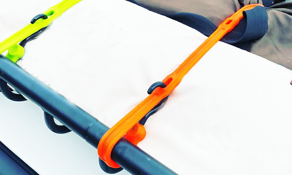 積載物の固定に便利なナイロンフック。製品の2倍の長さまで伸張!<br>