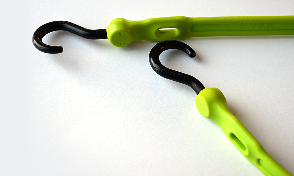 積載物の固定に便利なナイロンフック。製品の2倍の長さまで伸張!
