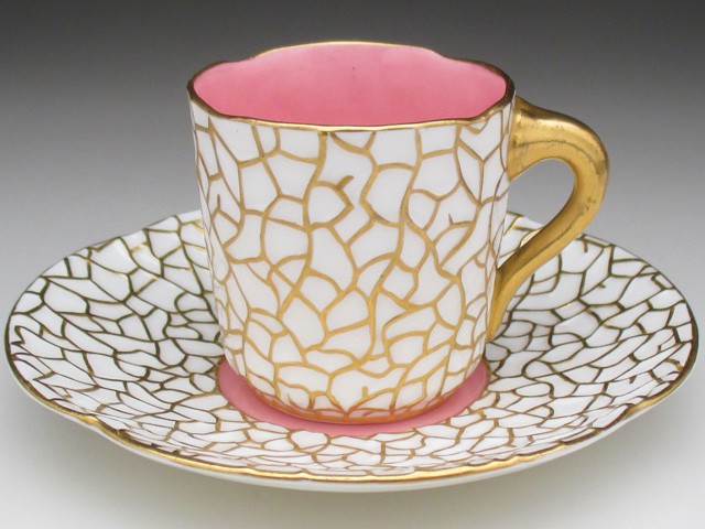 コールポート 金彩レリーフ網目文 カップ&ソーサー アンティーク 1891年