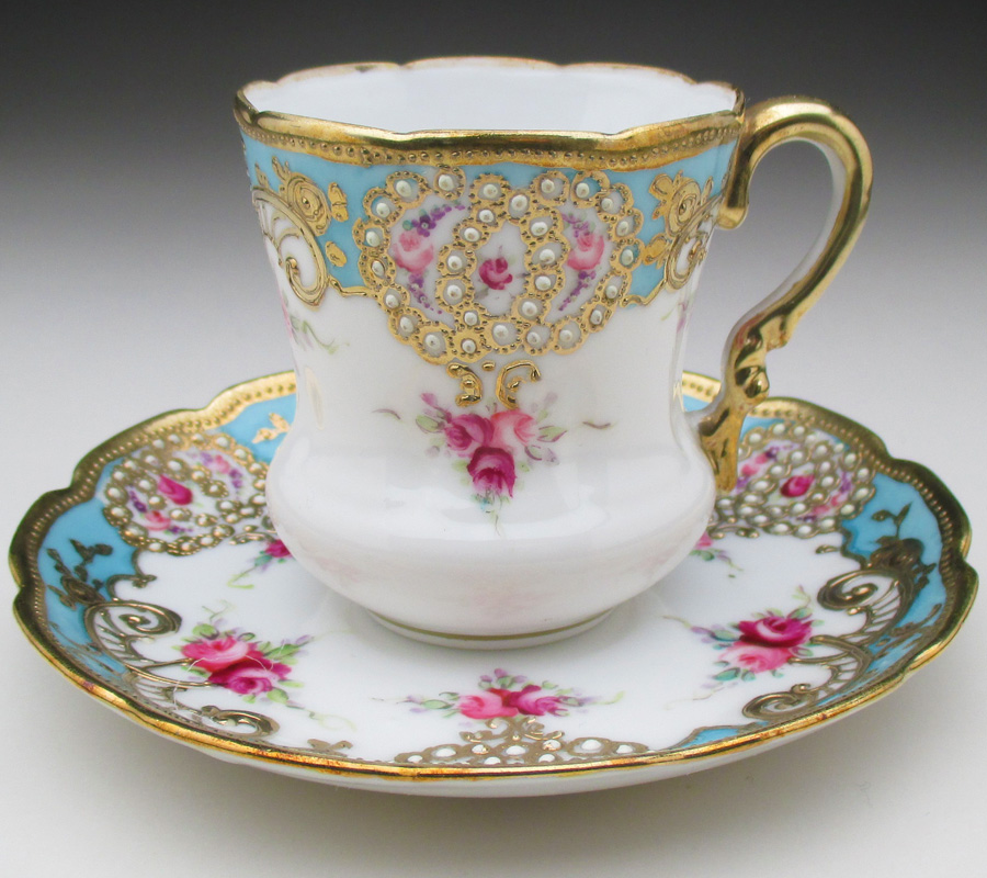 『オールドノリタケ 金盛り薔薇絵 デミタスカップ&ソーサー』