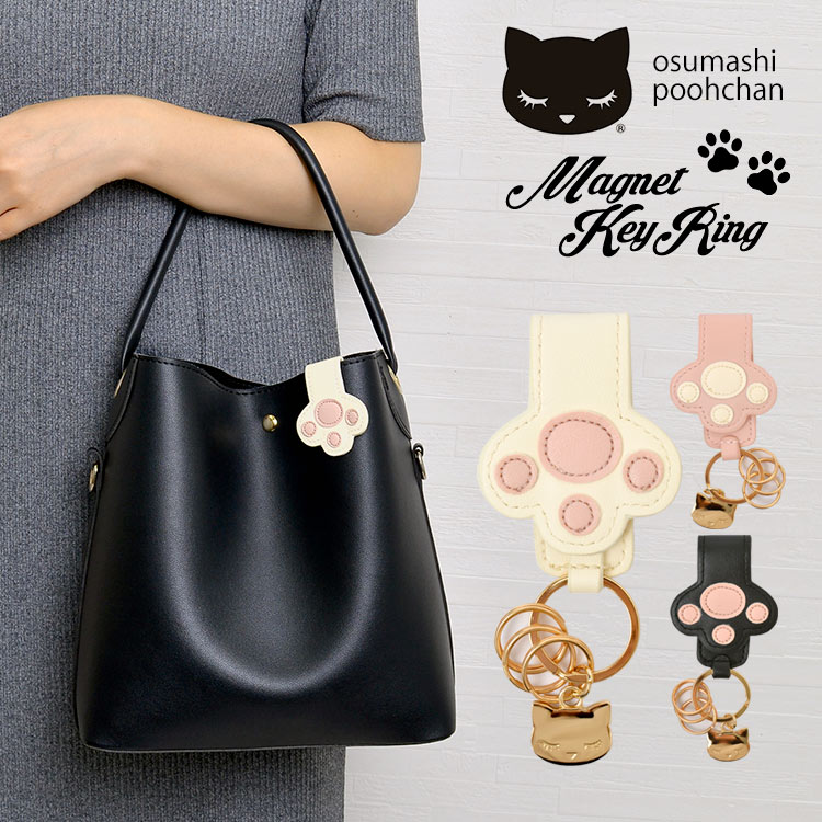 おすましプーちゃんの肉球がひょっこり…♪バッグにマグネットでピタッとくっつくキーリング。キーリング3連+プーちゃんのチャーム付き。内ポケットに付けて使ってもok!これでもうバッグの中で迷子になる心配なしです◎