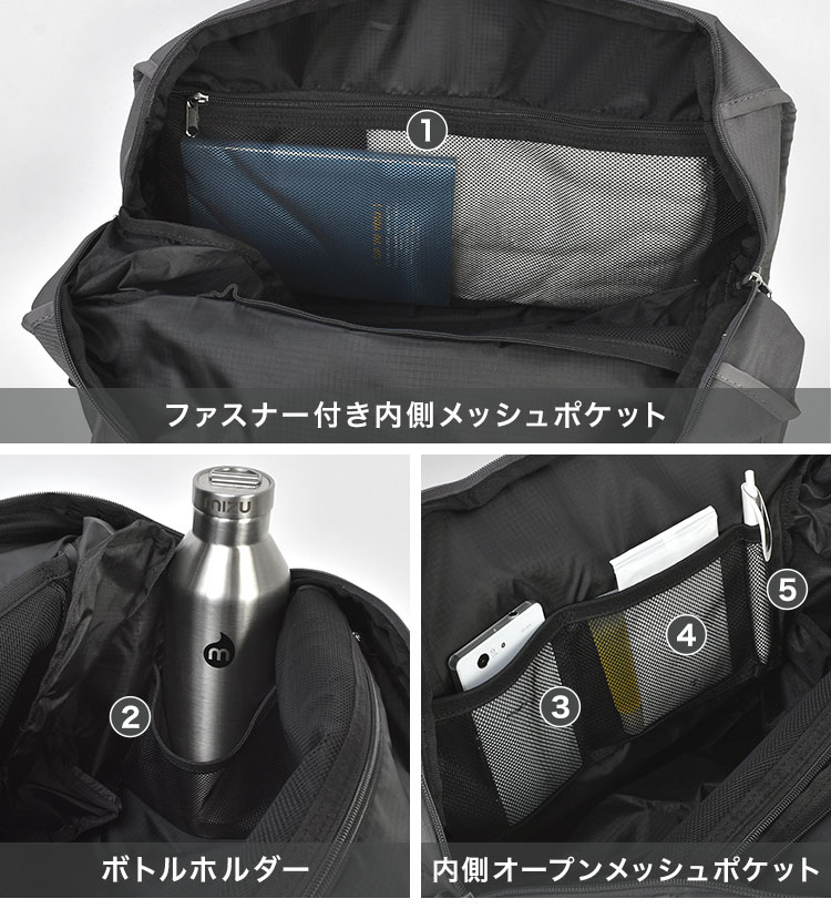 30L大容量の多機能ボストン、CARRY(キャリー)シリーズ。使いやすく便利な機能をたくさん詰め込み、ボストンバッグとしての完成度を極めました。旅行や出張はもちろん、荷物の多い方の普段使い、スポーツジム用など、あらゆるシーンで大活躍!背面にボトルや折り畳み傘を入れられる縦長立体ポケット付き。欲しい時にさっと出し入れ可能!側面のシューズポケットはメイン収納と分かれているので衛生的です。両面撥水加工なので雨の日のお出かけも安心◎