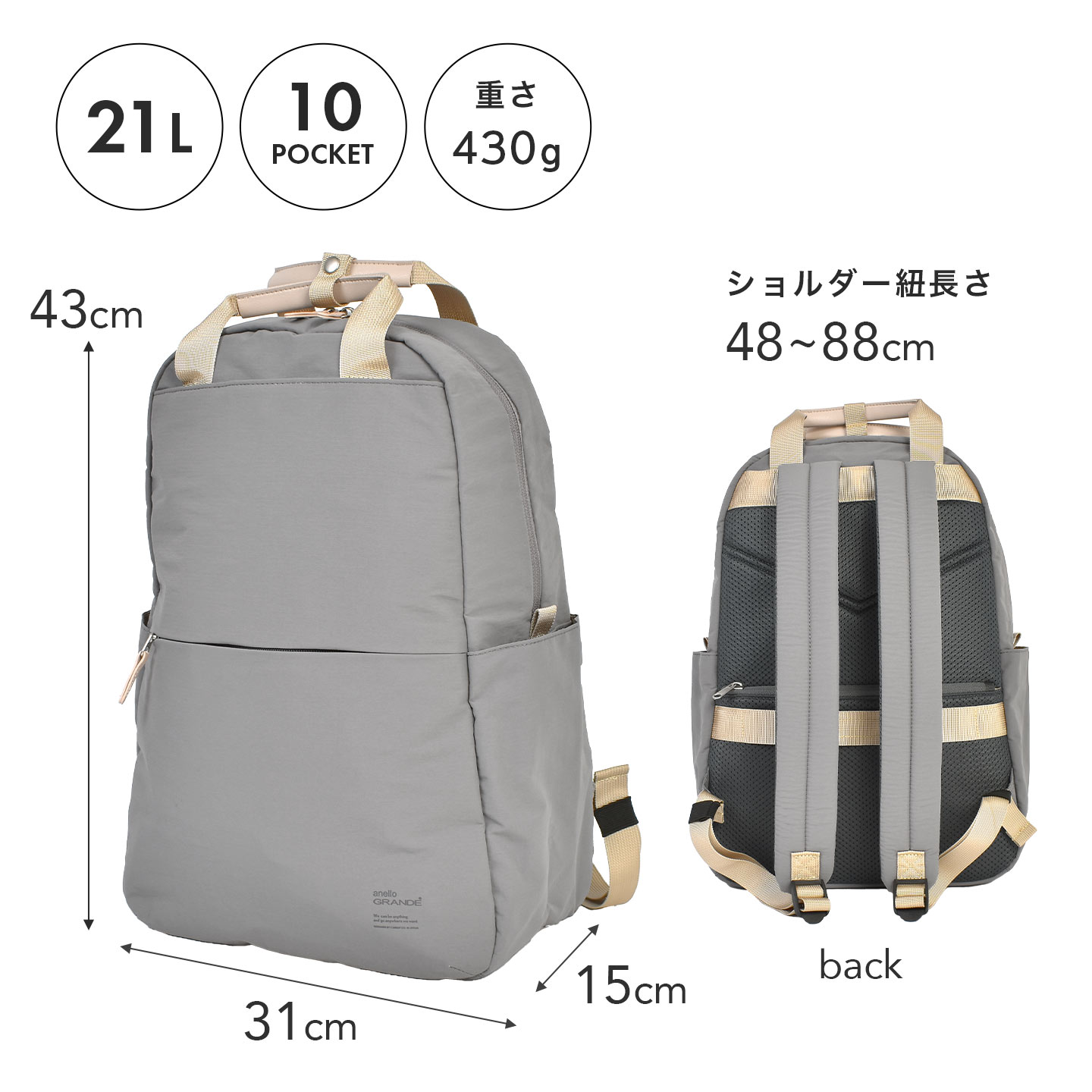 10代 20代 30代 40代 50代 高校 大学 高校生 大学生 通学 通勤 娘 孫 女性 女子 女の子 ガールズ レディース girl 母 おかあさん ママ バースデー 誕生日 プレゼント プチ ミニ ギフト お祝い お返し 母の日 クリスマス クリスマスプレゼント ホワイトデー おしゃれ オシャレ お洒落 かわいい 可愛い カワイイ シンプル リュック アネロ anello グランデ ブランド 撥水 はっ水 軽量 旅行 トラベル 大容量 A4 B4 リュックサック キャリーオン マザーズリュック マザーズバッグ マザーズバック ママバッグ ママバック ママリュック ナイロン ナイロンリュック ナイロンバッグ ナイロンバック きれいめ カジュアル ナチュラル ノートPC パソコン 収納 ポケット 多い いっぱい たくさん 背中ポケット 黒 ブラック グレー ベージュ グレージュ Anello GRANDE GTM0971 10ポケットハンドル付きリュック 21L バックパック デイパック デイバック デイバッグ キャリーオンバッグ キャリーオンバック キャリーオンリュック パソコンが入る 15インチ 背面ポケット 背中ポケット 背面メッシュ 大人 軽い 仕事 多機能 SABLE サブレ Rucksack Backpack