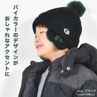 ポンポンとバイカラーがかわいい!Champion(チャンピオン)のキッズ用耳付きニット帽。お顔が当たる内側部分は毛足の長いふわふわしたボア生地で被り心地も見た目もあたたか♪耳当て付きで真冬の通園通学やおでかけにもぴったりです。幼稚園から小学校高学年まで、長く使えるアイテムです。