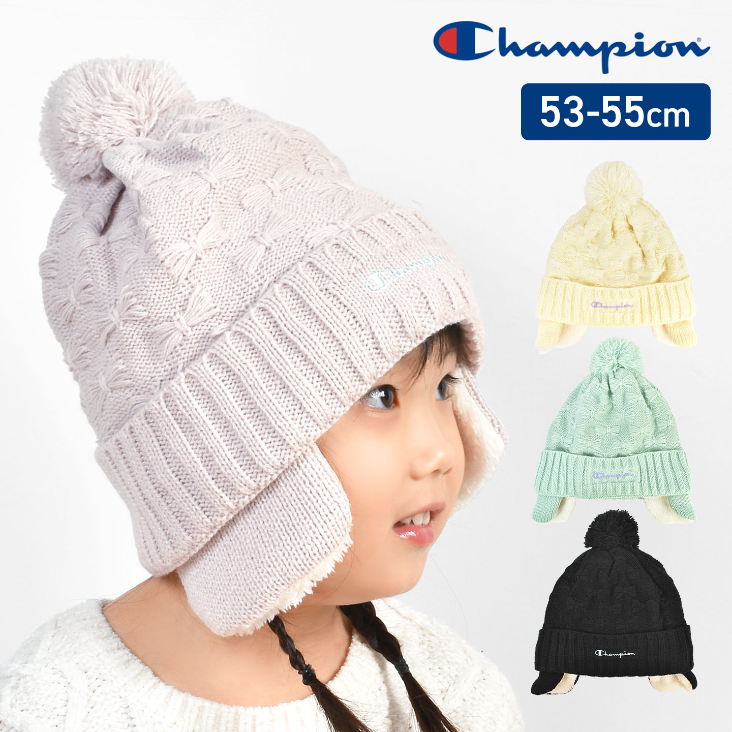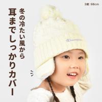 チャンピオン ニット帽 キッズ 耳あて 子ども champion ボンボン リボン かわいい 裏ボア 53 54 55 cm 通園 通学