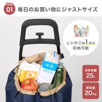 容量約25L、耐荷重20kgの大容量!コンパクトな見た目ながらもレジかご1杯分の荷物が入るのでたくさんお買い物しても大丈夫!お米やペットボトルなどのまとめ買いにも最適です◎
