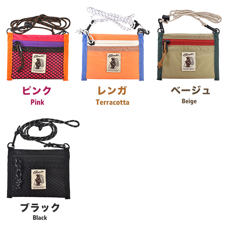 素材には丈夫で軽量なナイロン生地を使用し、撥水性もあるためアウトドアでも安心。ストラップ付きなので首掛け、肩掛けで使用できます。
