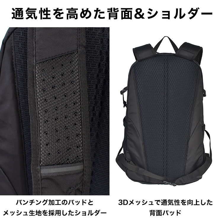 通気性に優れた軽量設計で長時間の背負いも快適。アウトドアから通勤・通学などのタウンユースまで幅広く活躍します。