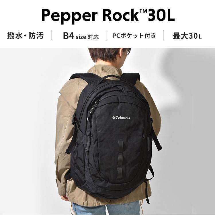 リュック Columbia コロンビア メンズ レディース PU7254 ペッパーロック 30L 大容量 A4 B4 PC パソコン 15インチ 14インチ 13インチ 入る PCスリーブ タブレット入れ PC入れ PCポケット PC 収納 ポケット アウトドア ブランド バックパック リュックサック 撥水 丈夫 大きめ 大きい ナイロン 登山 ハイキング キャンプ 通勤 通学 大人 高校生 中学生 無地 黒 Pepper Rock Backpack ブラック シンプル 女性 男性 一泊二日 日帰り 国内旅行 修学旅行 レジャー トレッキング 低山登山 ザック 普段使い ビジネス 防災 防汚 多機能 カバン 10代 20代 30代 40代 50代 中学校 高校 大学 大学生 学生 学校 入学 準備 入学準備 女子 女の子 ガールズ girl 男子 男の子 ボーイズ boy バースデー 誕生日 プレゼント ギフト お祝い イベント クリスマス クリスマスプレゼント お洒落 かっこいい bag 鞄 バッグパック デイパック デイバッグ マザーズバッグ デカリュック ポケット 多い 背面メッシュ はっ水 はっすい 頑丈 大型 ワンポイント ロゴ 大人リュック 社会人 大人デザイン 大人バッグ 大人バック スクールバッグ スクールバック 遠足 ピクニック フェス 夏 遠征 合宿 自然学校 林間学校 帰省 1泊2日 グランピング 山登り 女子高生 男子校性 アウトドアブランド 新学期
