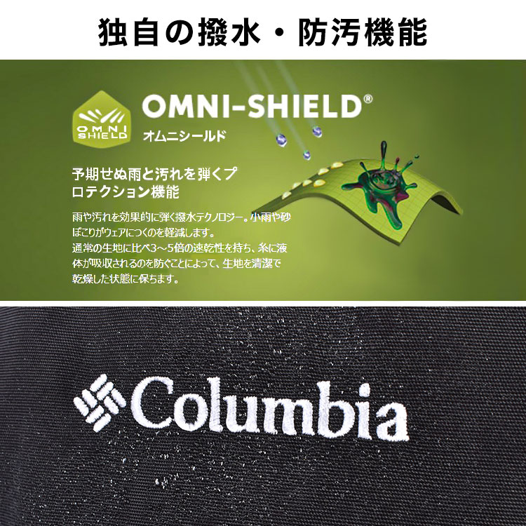独自の撥水・防汚素材OMNI-SHIELD(オムニシールド)を採用し、急な雨や汚れにも強い設計。丈夫なナイロン生地でタフな環境でも安心して使えます。