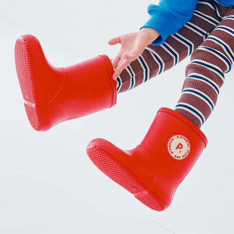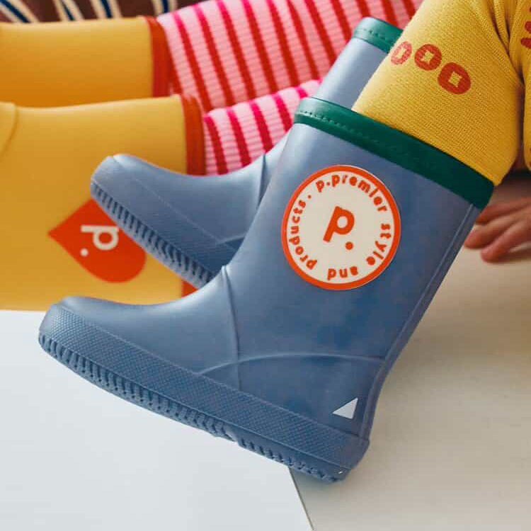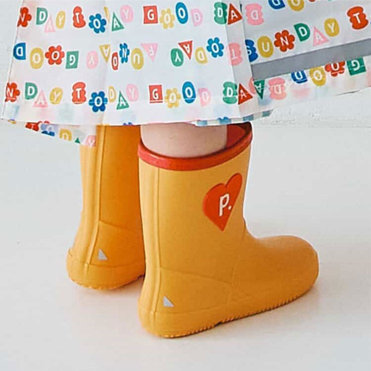 カラフルな配色と大きなモチーフがかわいい!子供服ブランド『p.premier(ピードットプルミエ)』の、雨の日が楽しくなるような明るいデザインのレインブーツ。