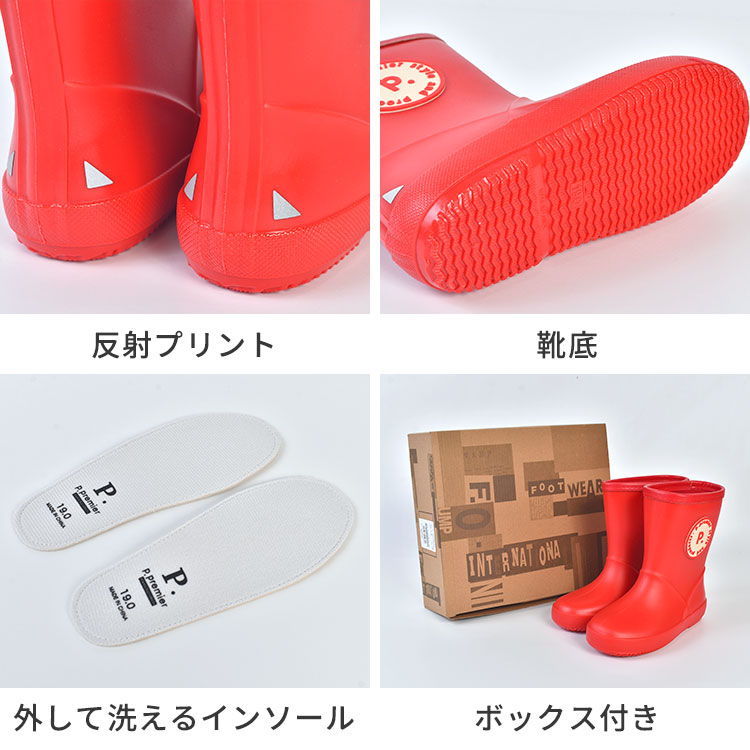 レインブーツ キッズ p.premier ピードットプルミエ 長靴 子供 女の子 男の子 おしゃれ かわいい 18cm 19cm 20cm ジュニア 小学生 低学年 幼稚園 雨靴 雨具 レインシューズ 通園 通学 ラバー シンプル レッド 赤 イエロー 黄色 ネイビー ブルー 青 ピンク ハート カラフル P164016 FO kids エフオー 子供靴 ラバーシューズ ショート 短め 軽量 柔らかい 歩きやすい 反射材 リフレクター 付き インソール 外せる 洗える 梅雨 雪 子供服 子ども こども 男子 女子 5歳 6歳 7歳 8歳 9歳 小学 1年 2年 3年 一年 二年 三年 生 小学校 保育園 保育所 学校 入園 入学 準備 入園準備 入学準備 息子 娘 孫 ガールズ 女児 girl ボーイズ 男児 boy ユニセックス バースデー 誕生日 プレゼント プチ ミニ ギフト お祝い イベント クリスマス クリスマスプレゼント お洒落 可愛い 無地 ゴム くつ キッズアパレル レイングッズ 箱入り ボックス付き