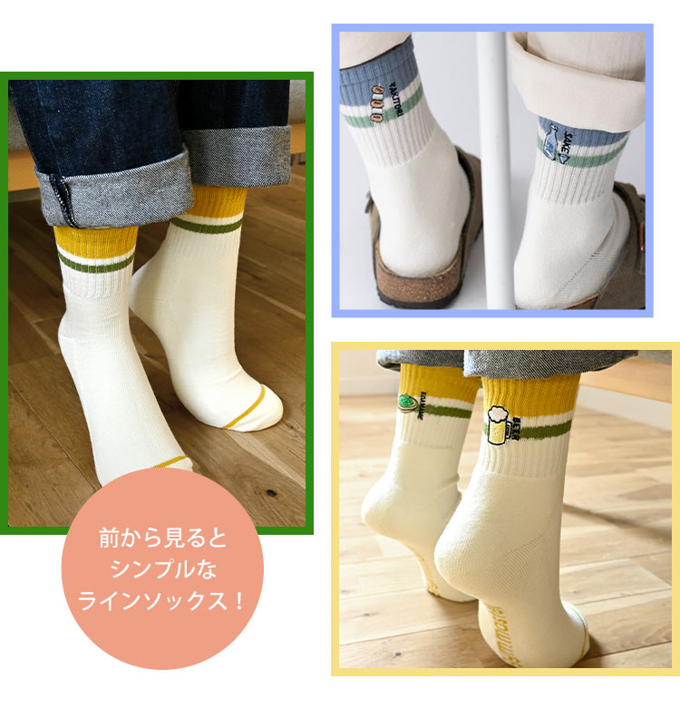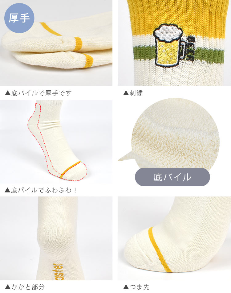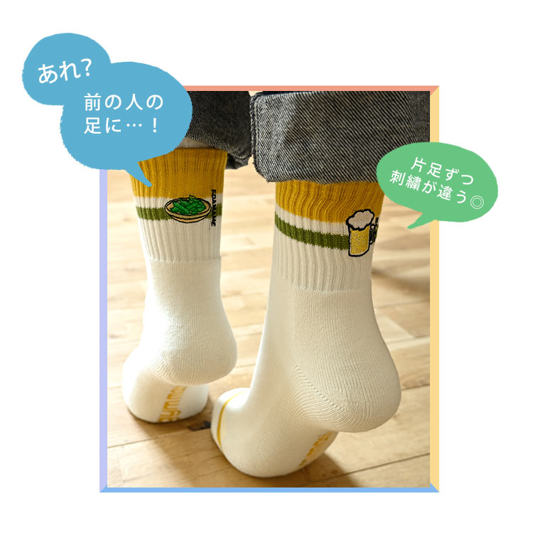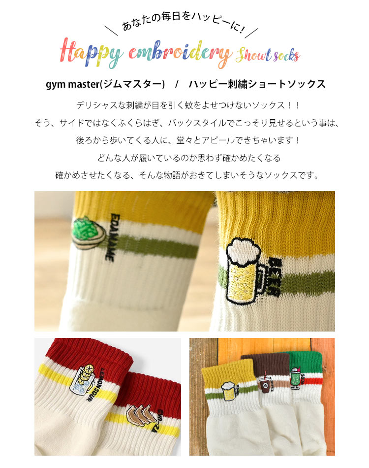 Details 【ハッピー刺繍コンビソックス 防蚊 抗菌消臭】 おちゃめな刺繍が目を引くおもしろソックス!!ビール・枝豆・サンドイッチなど、あなたの好きな食べ物の刺繍がデザインされた靴下。生地には抗菌機能、そして防蚊加工をほどこしてあるので、山登りや庭いじり、アウトドア、キャンプなどアウトドアシーンにも大活躍◎もちろん普段の生活でも大活躍してくれるアイテム♪ ブランド名 gymmaster / ジムマスター 品番 G366730 サイズ 23-25cm/25-27cm 素材 綿・ポリエステル・ナイロン・ポリウレタン 抗菌消臭・防蚊加工 ※虫よけ加工を施していますが、完全に防ぐものではありません。 ※防蚊の加工は永久的なものではありません。 生産国 中国 ご注意 ※こちらの商品は衛生面の都合上、未使用品でも返品交換は不可とさせて頂きます。今一度サイズ等をご確認の上、ご注文頂きますようお願い致します。 ※表記サイズより、多少の誤差があることがございます。 ※商品の画像はできる限り実物に近づけるよう配慮しておりますが、お使いのモニターやご覧になる環境によりましてはカラーの見え方に差が出る場合がございます。ご了承くださいませ。 ※メール便発送の場合タグを切ってパッケージから出して発送する場合があります。ご了承くださいませ。 関連キーワード 靴下 メンズ レディース ジムマスター gymmaster おしゃれ 可愛い 面白い 刺繍 抗菌 消臭 防蚊 クルーソックス ロークルー リブソックス スニーカーソックス くつ下 ブランド 白 ホワイト ボーダー ショートソックス 裏パイル 綿 23 24 25 26 27 cm ラインソックス G366730 ハッピー刺繍コンビソックス ローソックス 蚊を寄せ付けない 虫除け くつした かわいい ビール ドーナツ クリームソーダ 柄 フェス 男子 女子 高校生 10代 20代 30代 40代 50代 小学校 中学校 高校 大学 小学生 中学生 大学生 通学 通勤 大人 子供 子ども こども キッズ ジュニア 息子 娘 孫 女性 女の子 ガールズ girl 男性 男の子 ボーイズ boy バースデー 誕生日 プレゼント プチ ミニ ギフト お祝い お返し 母の日 父の日 クリスマス クリスマスプレゼント お洒落 シンプル かっこいい ボーダーライン グリーン イエロー 黄色 緑 ブラック 黒 赤 レッド ワイン チーズ 酒 レモンサワー コーヒー スイーツ 餃子 焼き鳥 カジュアル ワンポイント アメカジ レジャー スポーツ アウトドア 個性的 キャンプ フェス ライブ | |||||||||||||