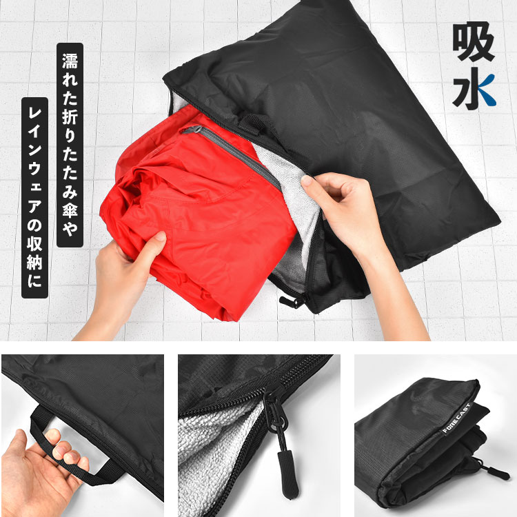 吸水ポーチ 400 FORECAST カジメイク レインウェア吸水収納ケース 黒 折りたたみ傘 レインウェア ケース マイクロファイバー 吸水ケース 防水ポーチ