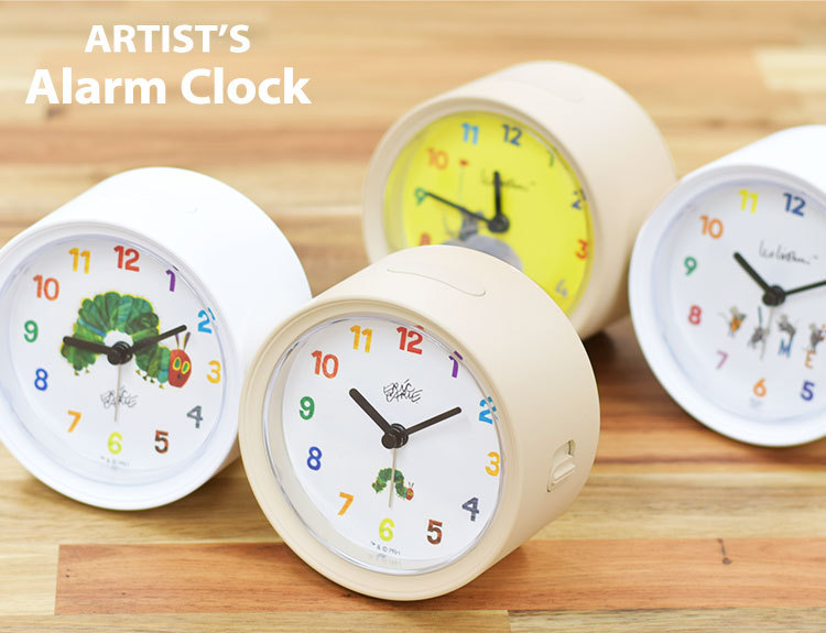 目覚まし時計 おしゃれ 静か アナログ アート 置時計 めざまし時計 北欧 ナチュラル 可愛い スヌーズ 作家 レオ・レオニ エリック・カール はらぺこあおむし