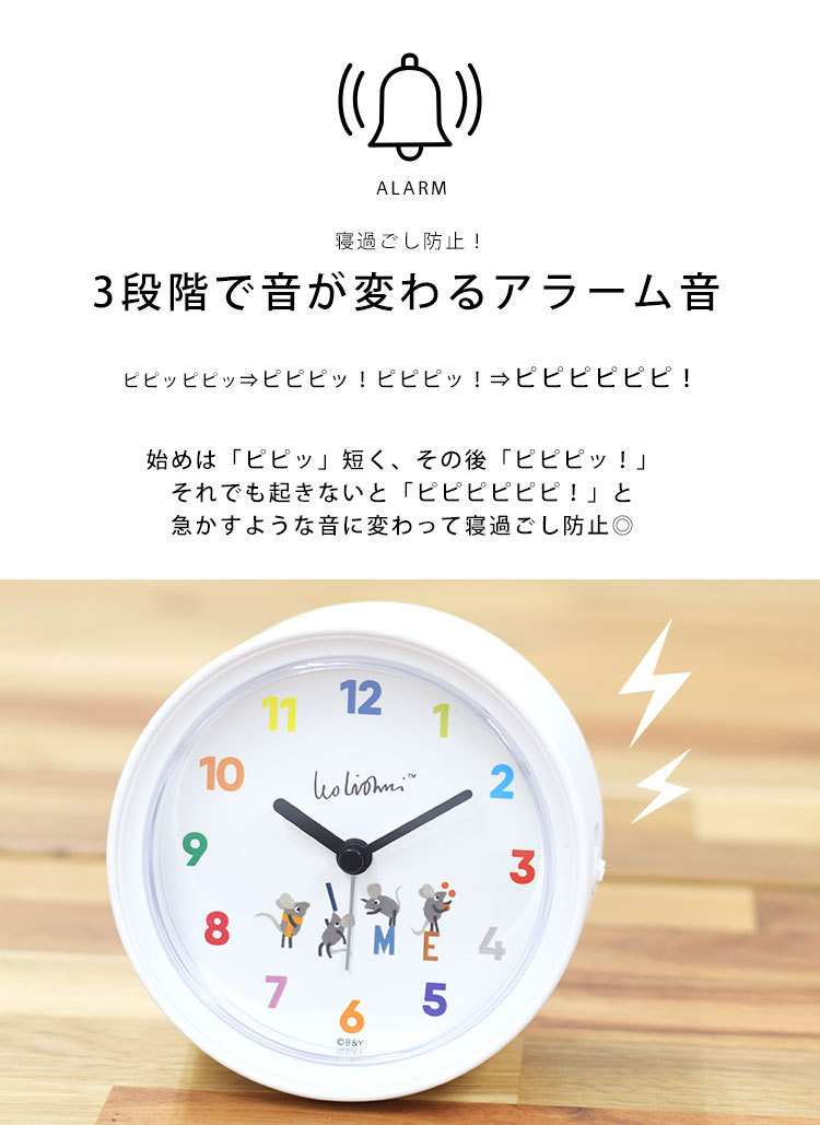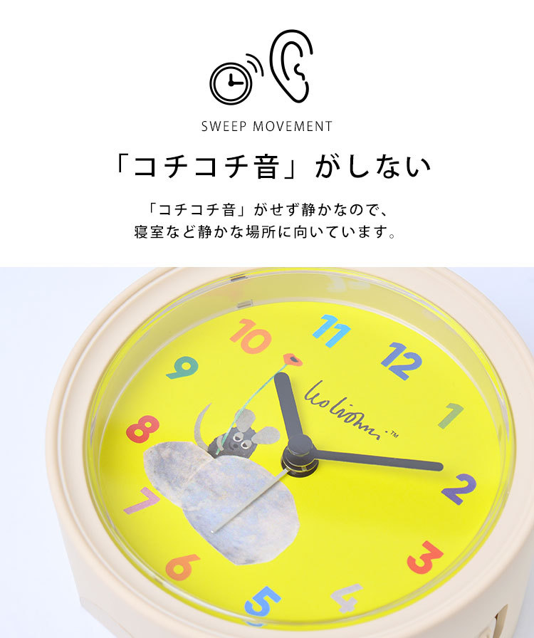 目覚まし時計 おしゃれ 絵本作家 アーティスト おすすめ 子供 キッズ レディース メンズ 小学生 中学生 高校生 大学生 社会人 大人 起きれる 静か カチコチ音しない 秒針の音しない 秒針の音がしない目覚まし時計 秒針の音がしない置き時計 スヌーズ機能 繰り返し アラーム