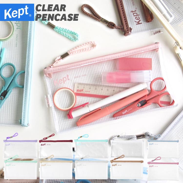 snsで大人気のケプトペンケースがリニューアル!中身が見やすいクリアメッシュやファスナーデザインはそのままに、一回り大きくなって容量アップ!マスクを広げたまま収納することも可能になりました。