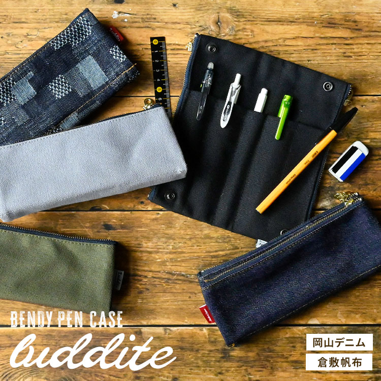 機能とデザインの融合で人気のラダイト 「ベンディペンケース」。開くとペンを1本ずつ収納できるようになっており、よく使うペンの位置をすぐに把握できます。ファスナーは信頼のYKK製でスムーズに開閉可能。素材は岡山デニムと倉敷帆布の2種類の素材からお選びいただけます。