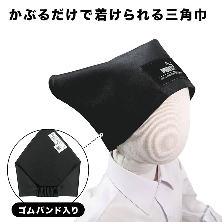 三角巾 キッズ PUMA プーマ 子供用 小学生 男の子 ゴム付き ゴムつき ヘアバンド かぶるだけ 被るだけ 子ども 一人でかぶれる 自分でかぶれる 被れる 後ろゴム 着脱 簡単 黒 無地 ポリエステル100% 洗える シンプル スポーツ ブランド 入学 準備 小学校 中学校 中学生 ジュニア 家庭科 調理実習 給食 料理 キャップ バンダナ M L 男子 かっこいい ゴムバンド ネームタグ付き ブラック 低学年 高学年 進級 新学期 お祝い プレゼント ギフト 130cm 140cm 150cm 160cm 6歳 7歳 8歳 9歳 10歳 10代 小学 1年 2年 3年 4年 5年 6年 一年 二年 三年 四年 五年 六年 生 学校 入学準備 通学 子供 こども 息子 孫 ボーイズ バースデー 誕生日 プレゼント プチ ミニ ギフト クリスマス クリスマスプレゼント おしゃれ お洒落 汚れにくい シワになりにくい 付けやすい