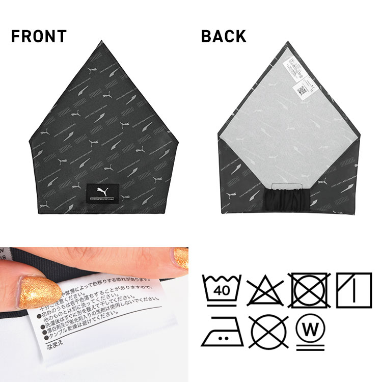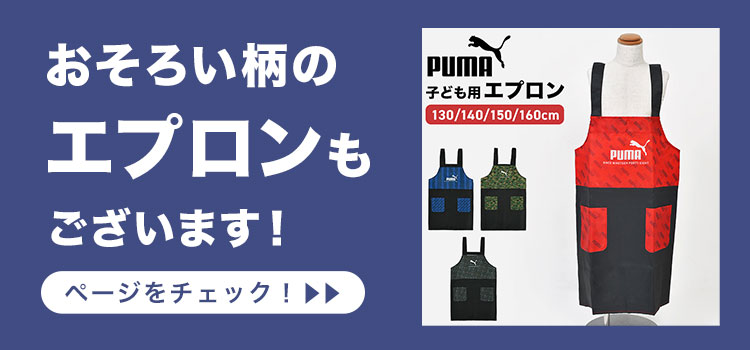 人気スポーツブランド『PUMA(プーマ)』のロゴがかっこいい、男の子用の三角巾。後ろがゴムバンドになっているので被るだけで簡単に着脱できます。小学生から中学生まで成長に合わせて選べる2サイズ展開。汚れにくくシワになりにくいポリエステル100%です。
