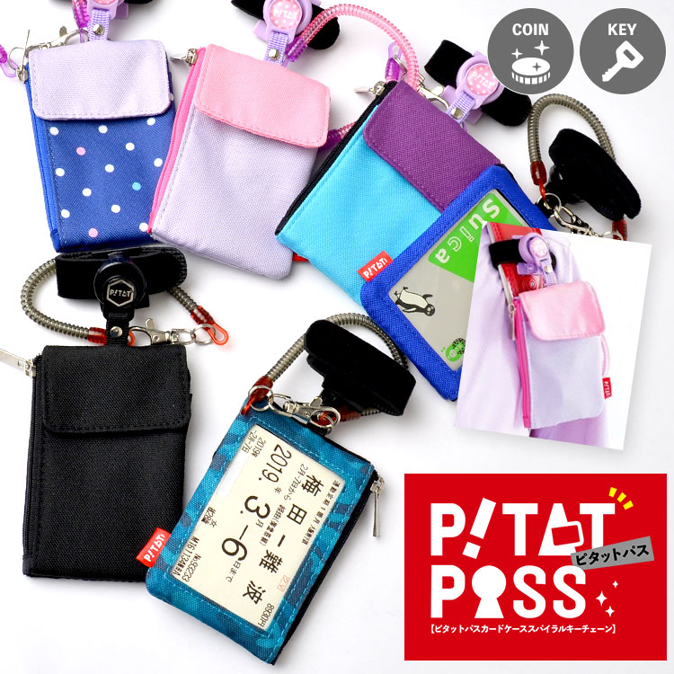 パスキーケース ピタットパスで通学&買い物&家の鍵などこれ1つでおでかけok!マグネットで付けはずしカンタンなのに、落ちにくい!タッチロック機構(特許出願中)必要な電子マネーや小銭もまとめて持ち歩けるから、改札や会計もピッとスマート!スパイラルチェーン付で、最大約60cmまで伸縮可能外す時はケースを持ち、ロック部分を中心にぐるっと180度回転させ、前方に向けて引っぱると外れます。戻す時は、ロック部分同士を近づけるだけでok!マグネットでピタッとくっつきます。吊下げフックとベルトの2ヵ所で固定することで、より安心してお使いいただけます。