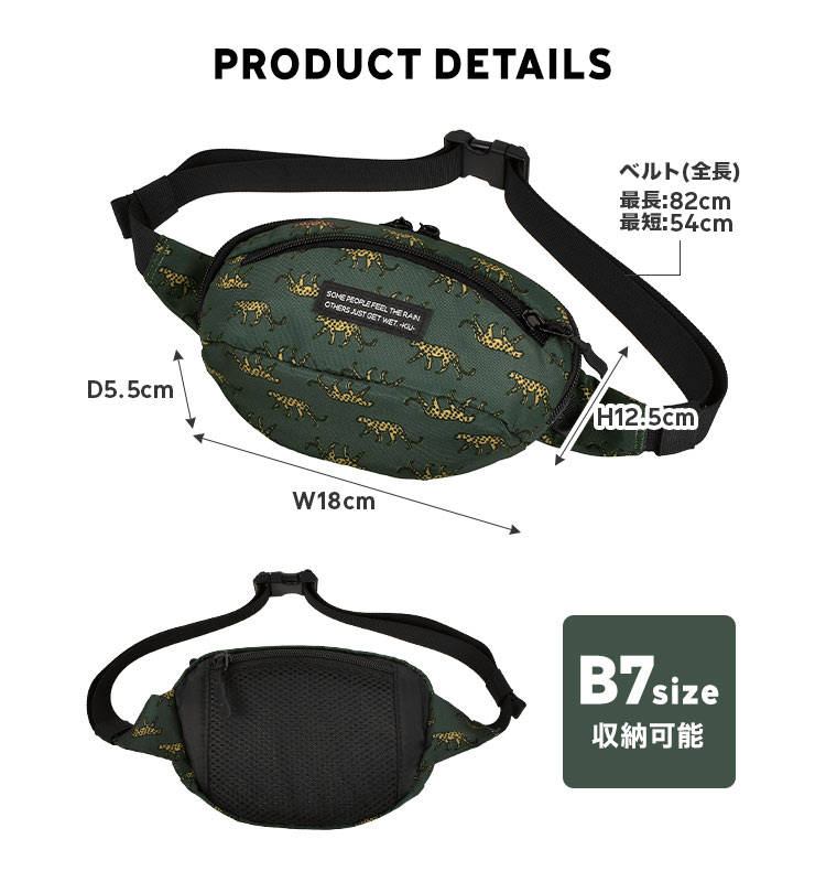 Details 【300D ボディバッグ ミニ】 KiUのオリジナルテキスタイルを落とし込んだオシャレで可愛い、小さめのボディバッグが登場。物を入れても型崩れし難い、耐久性に優れた300Dのポリエステル素材を使用。ウエストポーチとしても、ボディバッグとしても使えるサイズ感。メインポケットはマチ付きで大きく開くため中身が見やすく、たくさん物を入れてもストレスなく出し入れが可能です。 ブランド名 KiU / キウ 品番 K376 サイズ 約H12.5×W18×D5.5cm 重量 約110g 素材 ポリエステル100% 表:はっ水加工 / 裏面:はっ水加工を施しています。 生産国 中国 ご注意 ※生産の過程において、柄の位置や色味、柄の大きさなどが本画像と多少異なる場合がございます。ご了承くださいませ。 ※表記サイズより、多少の誤差があることがございます。 ※商品の画像はできる限り実物に近づけるよう配慮しておりますが、お使いのモニターやご覧になる環境によりましてはカラーの見え方に差が出る場合がございます。ご了承くださいませ。 ※メール便発送の場合タグを切ってパッケージから出して発送する場合があります。ご了承くださいませ。 関連キーワード 10代 20代 30代 40代 50代 60代 70代 80代 小学 1年 2年 3年 4年 5年 6年 一年 二年 三年 四年 五年 六年 生 小学校 中学校 高校 大学 小学生 中学生 高校生 大学生 保育園 保育所 幼稚園 学生 学校 入園 入学 準備 入園準備 入学準備 通園 通学 通勤 男児 女児 子ども 子供 こども キッズ ジュニア 息子 娘 孫 女性 女子 女の子 ガールズ レディース girl 男性 男子 男の子 ボーイズ メンズ boy 父 母 おかあさん おとうさん パパ ママ シニア おじいちゃん おばあちゃん お爺ちゃん お婆ちゃん 祖父 祖母 じいじ ばあば バースデー 誕生日 プレゼント プチ ミニ ギフト お祝い お返し 粗品 景品 送別会 イベント 母の日 父の日 クリスマス クリスマスプレゼント バレンタイン チョコ以外 ホワイトデー おしゃれ オシャレ お洒落 かわいい 可愛い カワイイ シンプル かっこいい カッコいい カッコイイ kiu キウ 300D ボディバッグ 小さめ ミニバッグ ミニバック ショルダーバッグ ショルダーバック 斜め掛け 斜めがけ 斜めがけバッグ 斜め掛けバッグ 斜め掛けバック 斜めがけバック ウエストバッグ ウエストバック ウェストバッグ ウェストバック ウエストポーチ 撥水 防水 軽い 軽量 派手 目立つ 総柄 レオパード柄 虎 タイガー シエラ 山 緑 グリーン 黄色 イエロー オレンジ 黒 ブラック 鞄 かばん カバン 旅行 サブバッグ サブバック 野外 フェス イベント 自転車 サイクリング ウォーキング ランニング ジョギング スポーツ 登山 釣り バイク スマホ 小物収納 KiU K376 ボディバック ボディーバッグ ボディーバック 小さい ミニショルダー ミニショルダーバッグ ミニショルダーバック ウェストポーチ スマホポーチ ポシェット ヒップバッグ ヒップバック アウトドア Bodybag mini | |||||||||||||