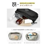 約500mlのペットボトルや小物類をまとめて収納できるメインポケット。
