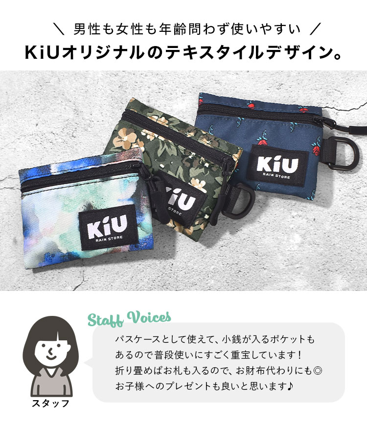 KiUのオリジナルテキスタイルを落としこんだオシャレで可愛い、 コインケース・パスケースを兼ね揃えたマルチポーチ。