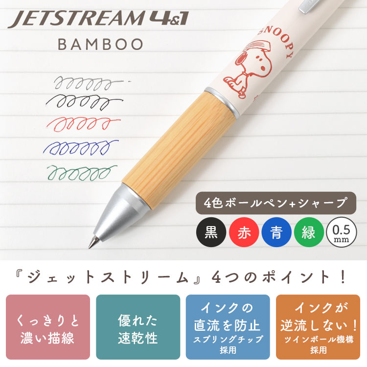 ジェットストリーム 4&1 スヌーピー バンブー 多機能ボールペン シャーペン 0.5mm 4色 3色 日本製 三菱鉛筆 JETSTREAM キャラクター