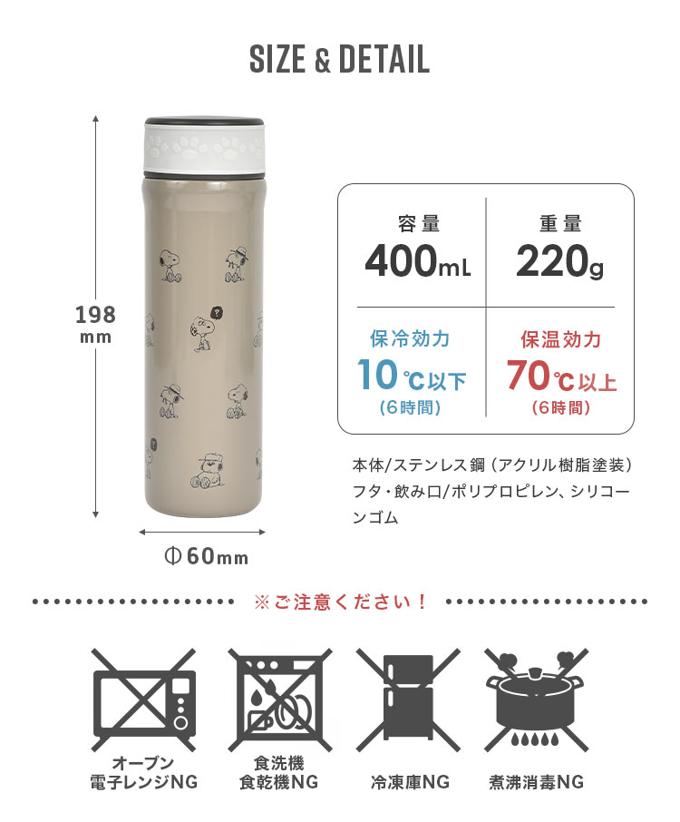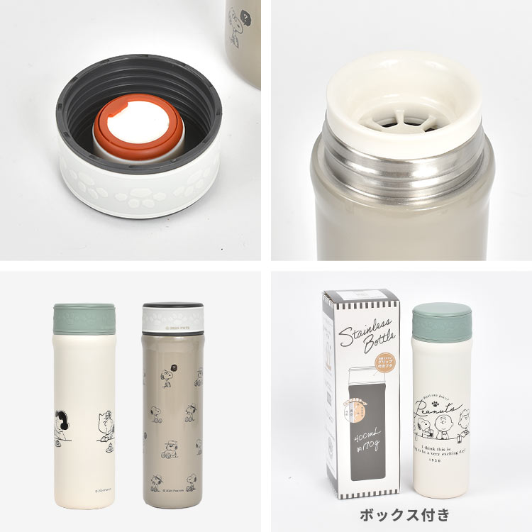 水筒 SNOOPY スヌーピー 400mL 軽い 直飲み おしゃれ 女子 ステンレスボトル 保冷 保温 シンプル かわいい 大人 女性 子供 高校生 中学生 軽量 フタ付き マグボトル コンパクト ランチ グッズ 持ち運び スリム 通勤 通学 内蓋付き オフィス 広口 弁当 雑貨 ギフト ベージュ PEANUTS ピーナッツ キャラクター マイボトル 結露しない 洗いやすい イラスト アイボリー ダイレクト 真空ボトル キッズ プレゼント 細身 メニーブラザー ブラウン 持ちやすい 10代 20代 30代 40代 50代 中学校 高校 大学 学校 入学 準備 入学準備 子ども こども ジュニア 女の子 レディース 母 おかあさん ママ シニア バースデー 誕生日 プチ ミニ お祝い お返し ホワイトデー お洒落 可愛い