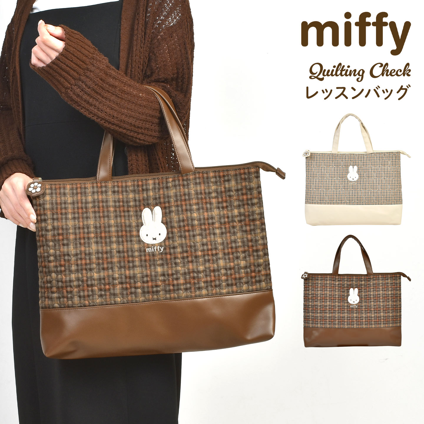 ミッフィー レッスンバッグ キルティング マチ付き miffy 女の子 手提げバッグ 小学校 大人 かわいい チェック柄