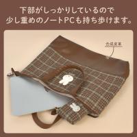 バッグの下部には丈夫な合成皮革を使用しているので、少し重めのノートPCも安心して持ち運び可能。