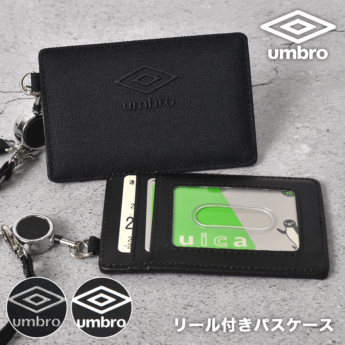 シンプルなロゴデザインがかっこいいumbro(アンブロ)のリールストラップ付きパスケース。