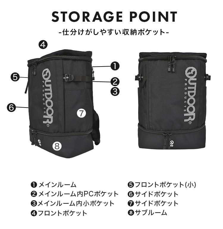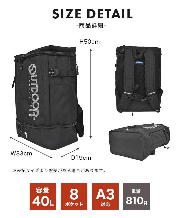 リュックサック 大容量 通学 OUTDOOR PRODUCTS アウトドア プロダクツ レディース メンズ バックパック ボックス型 スクール 40L 2ルーム PCポケット 送料無料