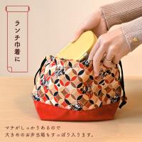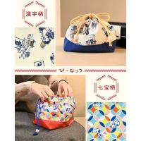 和柄×キャラクターのデザインが可愛い巾着袋。ちりめん生地の風合いがとってもおしゃれ♪お弁当袋やポーチにちょうどいいマチがついた横長の大きめサイズです。