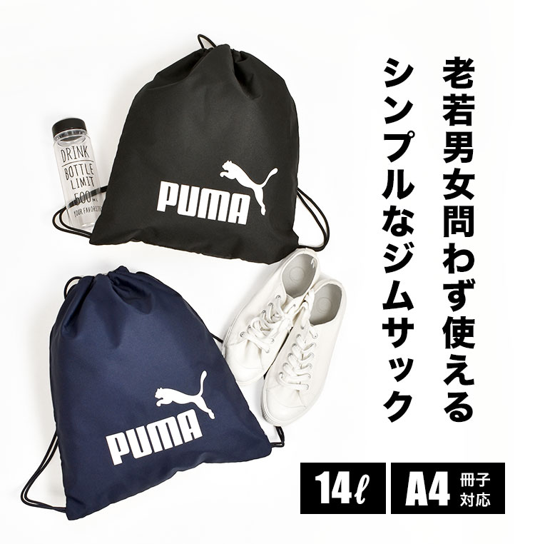 ナップサック スポーツ 女子 PUMA プーマ レディース メンズ キッズ 子供 男子 小学校 中学生 体操着入れ リュック 黒 紺 ピンク