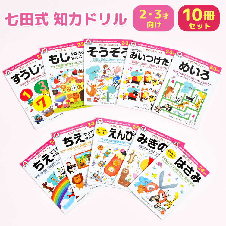 「自分で考え、判断し、表現する力」が育つ!多くの芸能人やスポーツ選手の才能を開花させたと注目を集めている『七田式教育』監修の七田式知力ドリルです。右脳と左脳、両方の脳を使う問題で、二つの脳をバランスよく使える子に!はさみ・鉛筆の練習や、数字・文字の基礎など2~3歳の幼児の脳と発育を促進させるカリキュラムを揃えました。ご自身のお子様へはもちろん、お孫さんやお友達のお子様などへのプレゼントにも◎充実の10冊まとめ買いセットです。