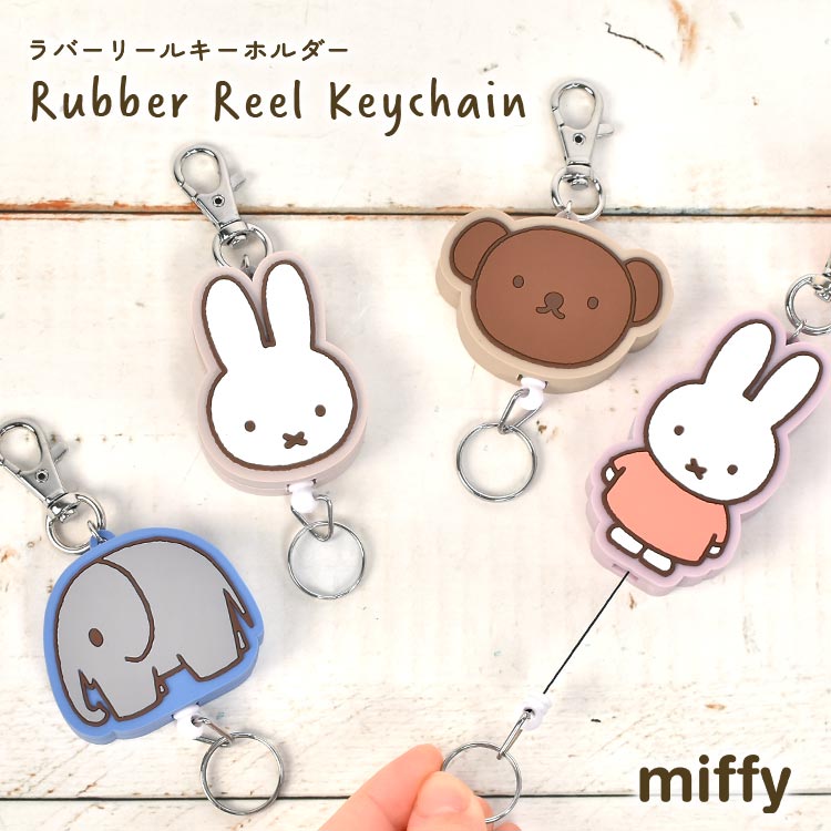 リール ラバーキーホルダー ミッフィー miffy キャラクター キーリング かわいい おしゃれ 伸びる キッズ 女の子 鍵 通学 通勤 くすみカラー ボリス boris ぞう