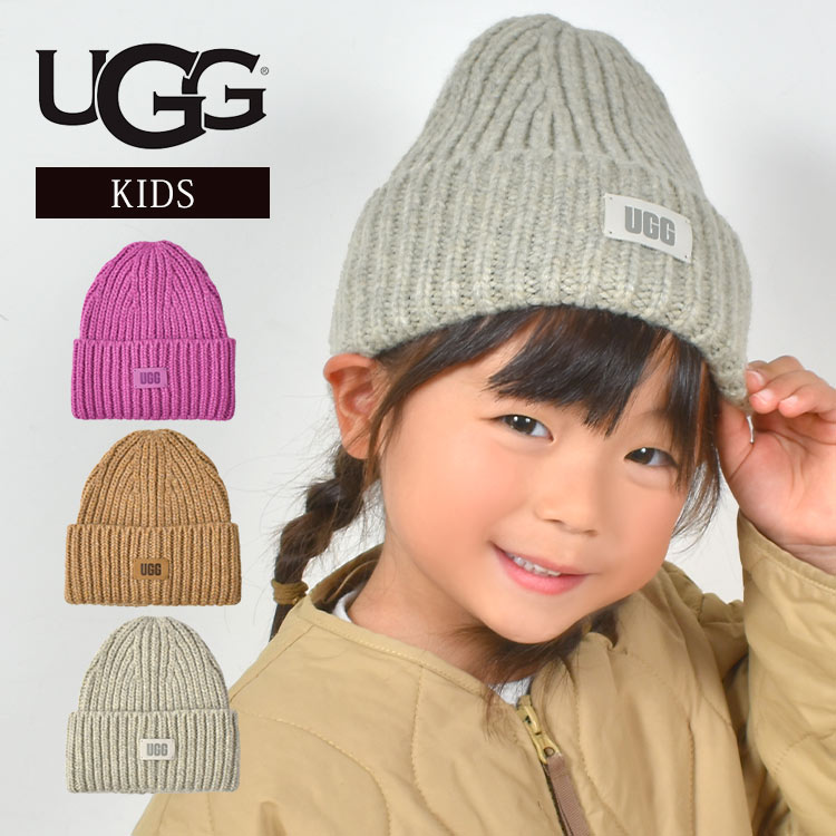 UGG アグ ニット帽 キッズ 女の子 ダンス 子供 暖かい 男の子 帽子 防寒 ピンク ブラウン グレー 通園 通学 かわいい おしゃれ
