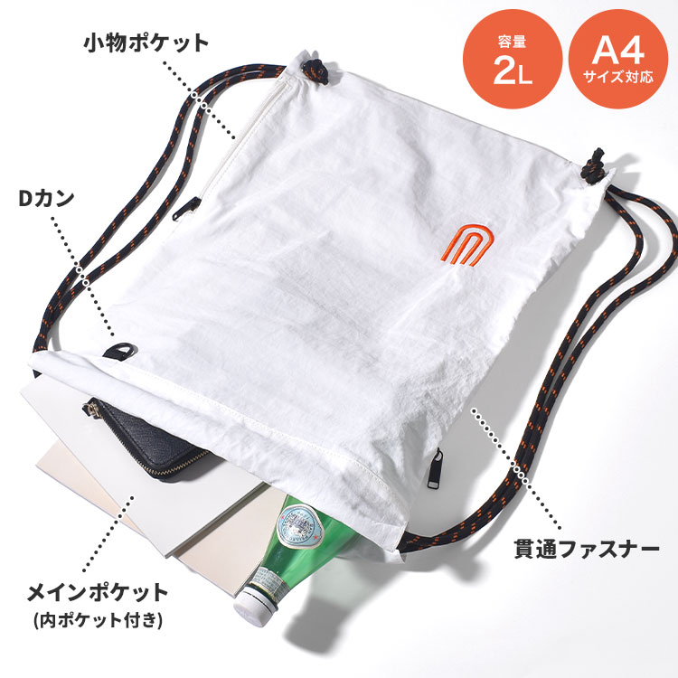 シンプルなデザインで、大人から学生まで使いやすいナップサック。