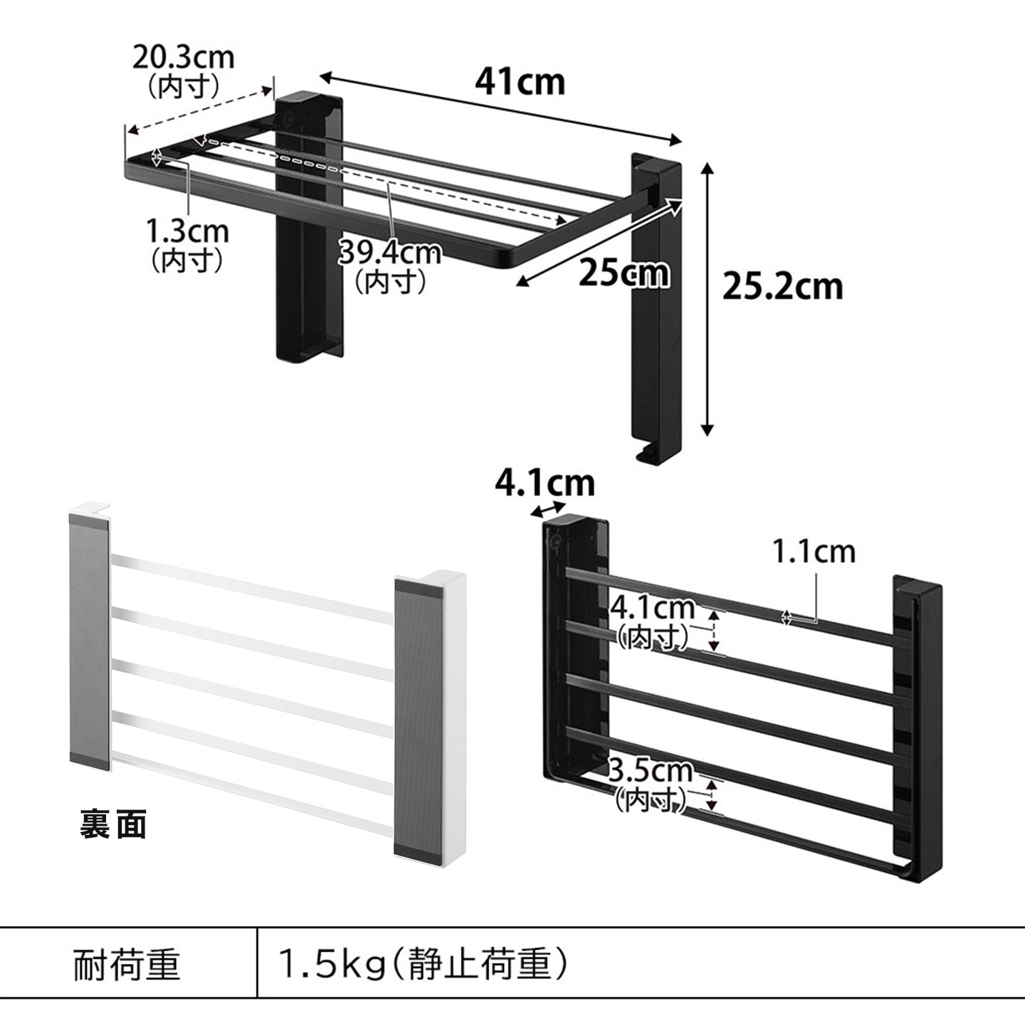![]() ![]() ![]() ![]() ![]() ![]() 洗濯機横や正面にペタッと貼るだけ!使いやすい高さで使える折り畳み棚 洗濯機の高さと同じくらいの位置に棚を作れるので、腰を屈めずに使えて便利です。 ![]() マグネットの設置部分が動き、曲面に沿う構造だから、カーブのある洗濯機の正面にも取り付けられます。 ![]() お風呂上がりに使うバスタオルや着替えの置き場所に 置き場所に困る、お風呂上がりに使うバスタオルや着替えなどを置けば、お風呂を上がってすぐに使えます。身体を拭いた後の濡れたタオルの一時掛けにも◎ ![]() 使う時だけ広げられる折り畳み式 下から持ち上げて、左右両側のロックピンに引っ掛けるだけで棚が固定されて簡単に使えます。必要な時だけ広げて使えるので、限られたスペースを有効に活用できます。 ![]() 使わない時は畳んでスリムに収納できます 使わない時は、畳むと奥行き4.1cmとスリムに収まるので邪魔にならず、洗濯物の出し入れもスムーズにできます。 ![]() ![]() ![]() ![]() ![]() ![]() ![]() Details 【使いやすい高さに開くマグネット洗濯機横折り畳み棚】 マグネットで洗濯機の正面や側面に簡単取り付け!使いやすい高さで使える折り畳み棚です。取り付け部分は可動式で、曲面にも取り付けが可能。棚は下から引き上げて固定するだけで簡単に使用することができます。入浴後の着替えやバスタオルの一時置きに便利で、使わない時はスリムに折り畳めるので、洗濯物の出し入れもスムーズです。 ブランド名 tower / タワー JAN 4903208100199 / 4903208100205 品番 10019 / 10020 サイズ 使用時:W41×D25×H25.2cm 収納時:W41×D4.1×H25.2cm [内寸] 棚:W39.4×D20.3×H1.3cm 耐荷重 約1.5kg 重量 約1270g 素材 本体:スチール(粉体塗装) マグネット 滑り止め・クッション:シリコーンゴム 使用できる面 マグネットがつく凹凸のない平らな面・スチール面 生産国 中国 ご注意 ※表記サイズより、多少の誤差があることがございます。 ※商品の画像はできる限り実物に近づけるよう配慮しておりますが、お使いのモニターやご覧になる環境によりましてはカラーの見え方に差が出る場合がございます。ご了承くださいませ。 関連キーワード 使いやすい高さに開くマグネット洗濯機横折り畳み棚 山崎実業 タワー 洗濯機 ラック tower 10019 10020 公式 ホワイト ブラック 白 黒 タオル置き 収納 折りたたみ 磁石 パジャマ 一時置き スリム 省スペース コンパクト 着替え タオルラック 棚 上開き 洗面所 シンプル スタイリッシュ スマート オシャレ お洒落 便利 着替え置き 脱衣所 浮く 浮かせる収納 マグネットラック 強力 整理整頓 洗濯機横 モノトーン 折りたたみ スペース 有効活用 簡単設置 タオルバー ランドリー収納 寝巻き置き 新生活 ギフト プレゼント 引越し 引っ越し 新居 新築 祝い yamazaki Magnetic Folding Laundry Shelf 山実 やまじつ ヤマジツ やまざきじつぎょう たわー towerシリーズ ブランド インテリアブランド | ||||||||||||||