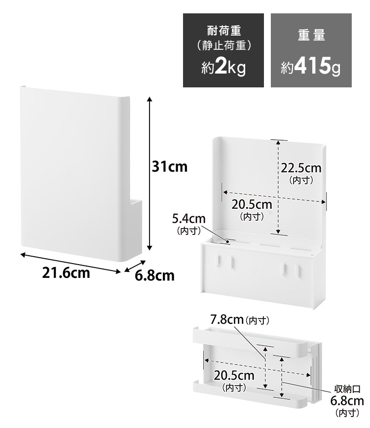 コードホルダー:W20.5×D5.4×H22.5(上段)・H7.8(下段)cm