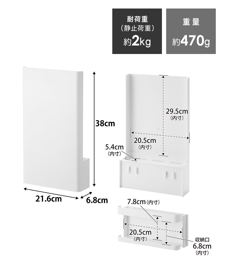 コードホルダー:W20.5×D5.4×H29.5(上段)・H7.8(下段)cm
