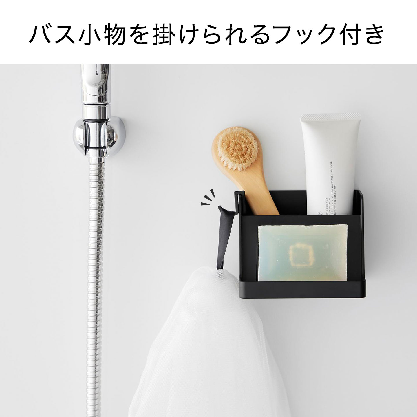 泡立てネットやブラシを掛けられる付属のフック付き