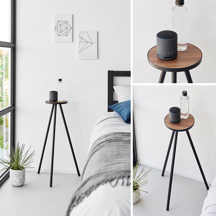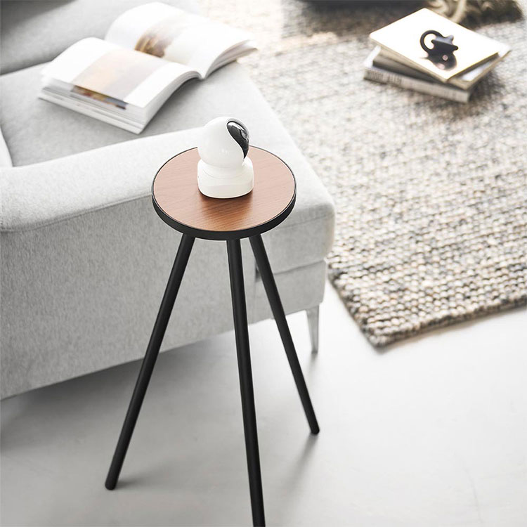 天然木とスチールの組み合わせが美しい。ちょっと置きに最適なハイテーブルです。ペットやお子様の見守りカメラスタンドとしてや、小さな植物など高さを出して飾りたい時にも便利です。
